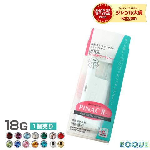 【医療用ステンレス】ピナックIIα 耳たぶ用 18G たった1/100秒!瞬間ピアッサー 片耳用 ピアッサー ピナック2 誕生石/ボール ピアス穴開け ピアス穴あけ ステンレス ピアッシング 金属アレルギー(1個売り)◆オマケ革命◆