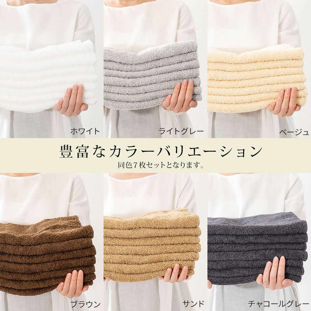 ・触れたときのふっくら感はもちろん、軽やかな使い心地毛羽落ちが少なく、硬くなりにくい素材を使っているので、洗濯後も毛足がふっくら立って吸水力肌触りが長持ちします。